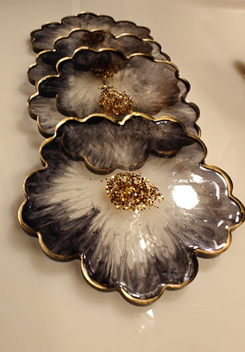 Functional art for your table — personalised resin coasters.