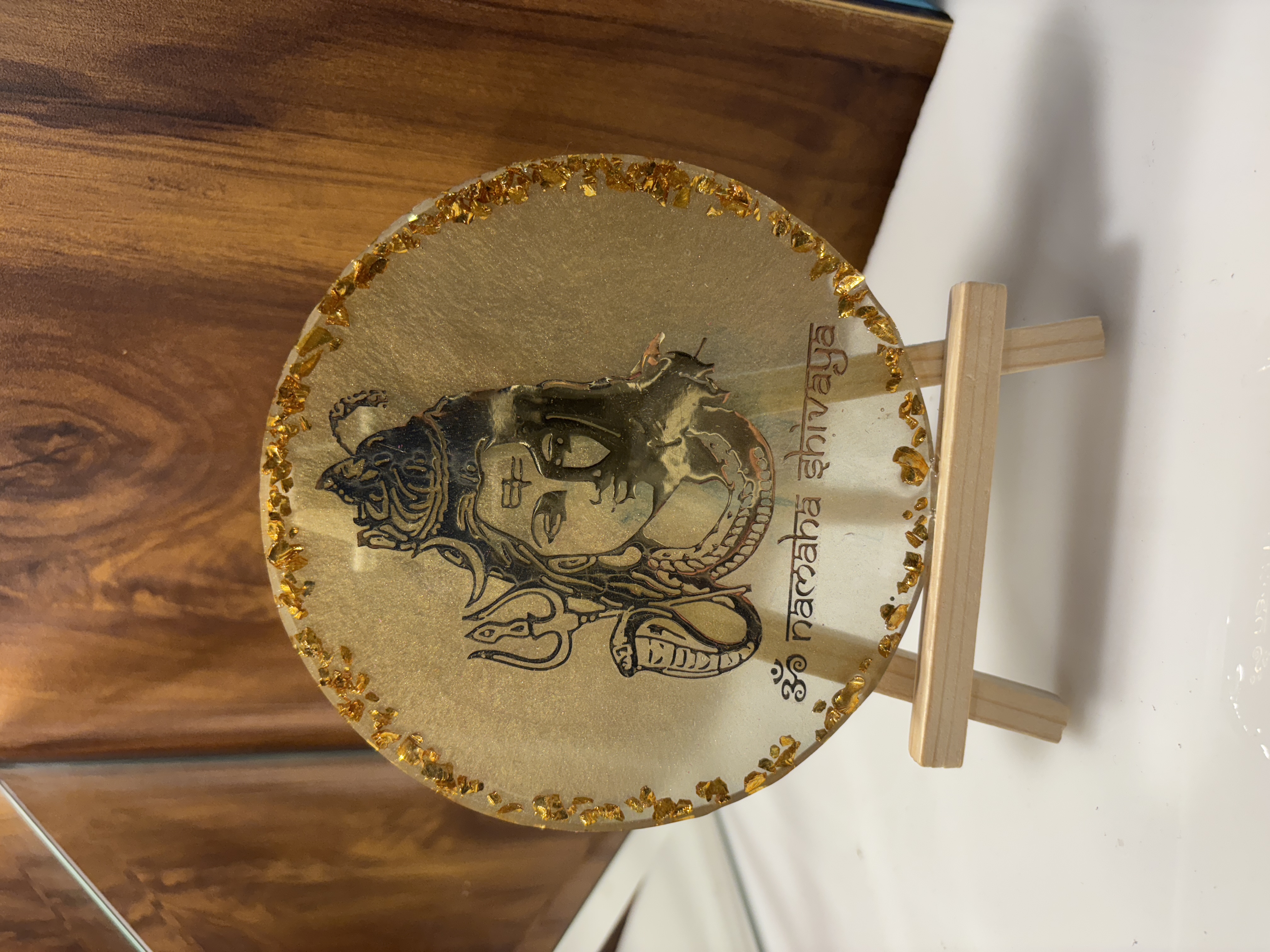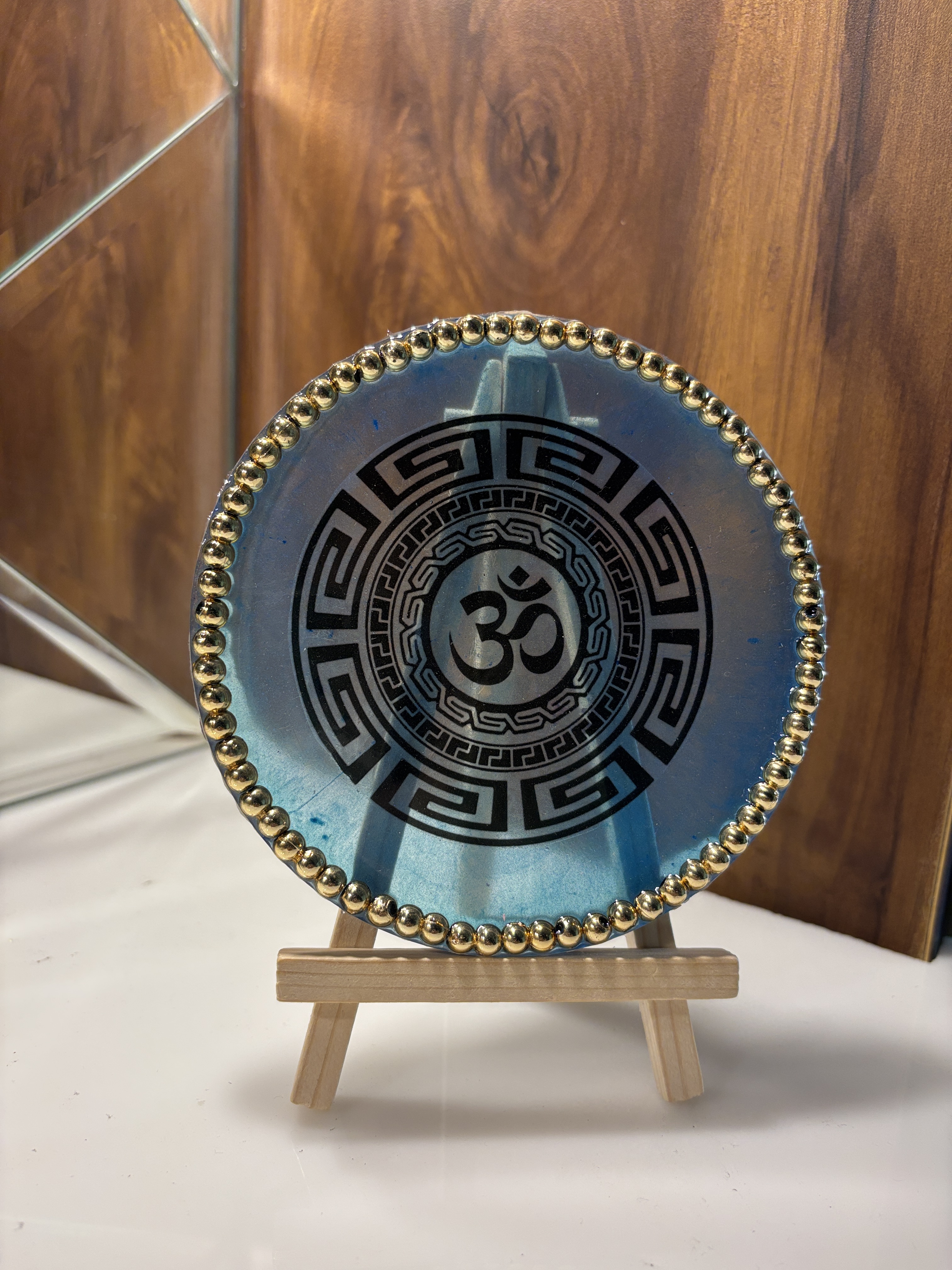 Gayatri Mantra, Mool Mantar, Hanuman Chalisa, or any verse of your choice — handcrafted in resin with gold leaf accents and decorative borders. Perfect for pooja rooms and gifting.