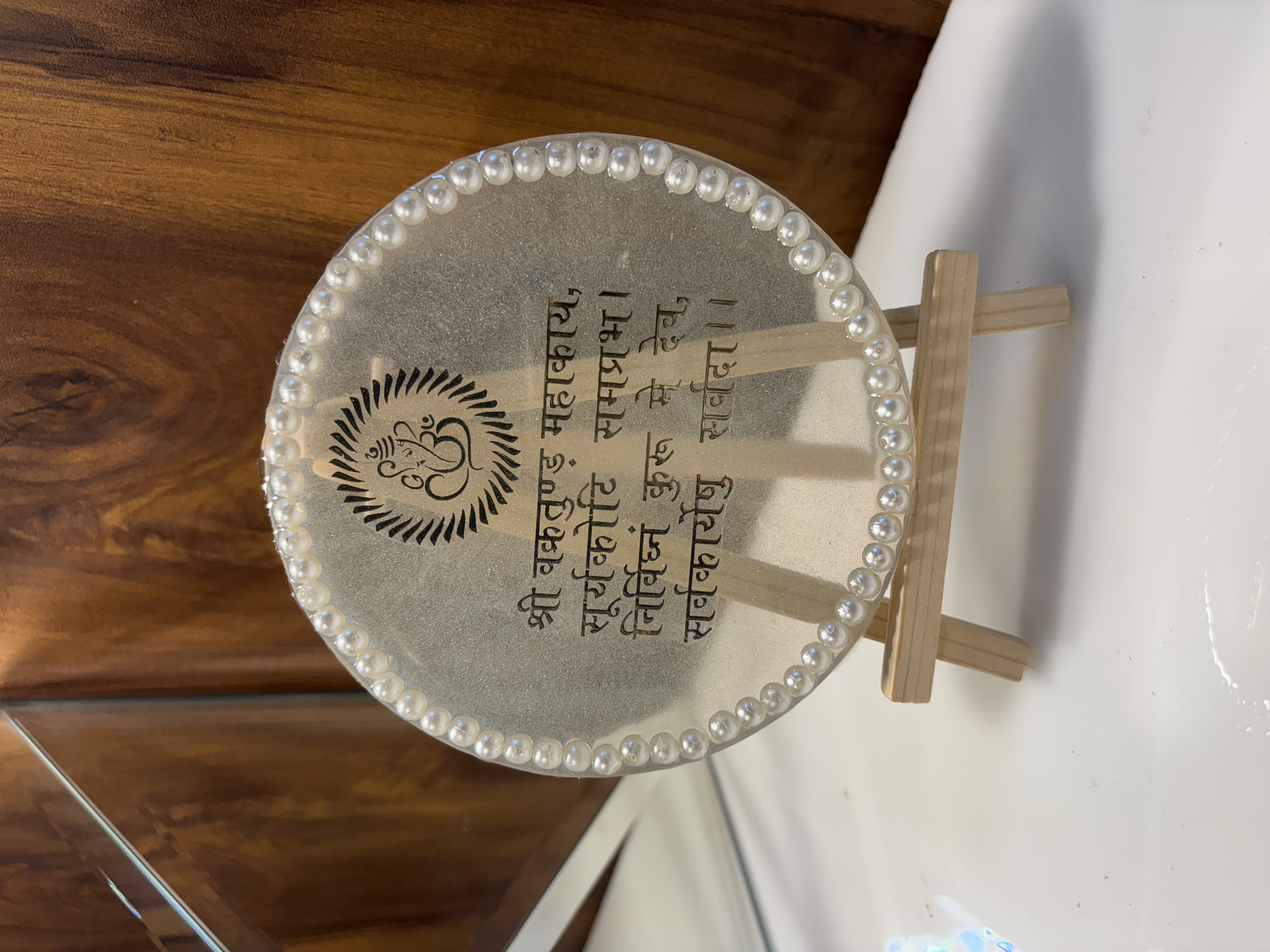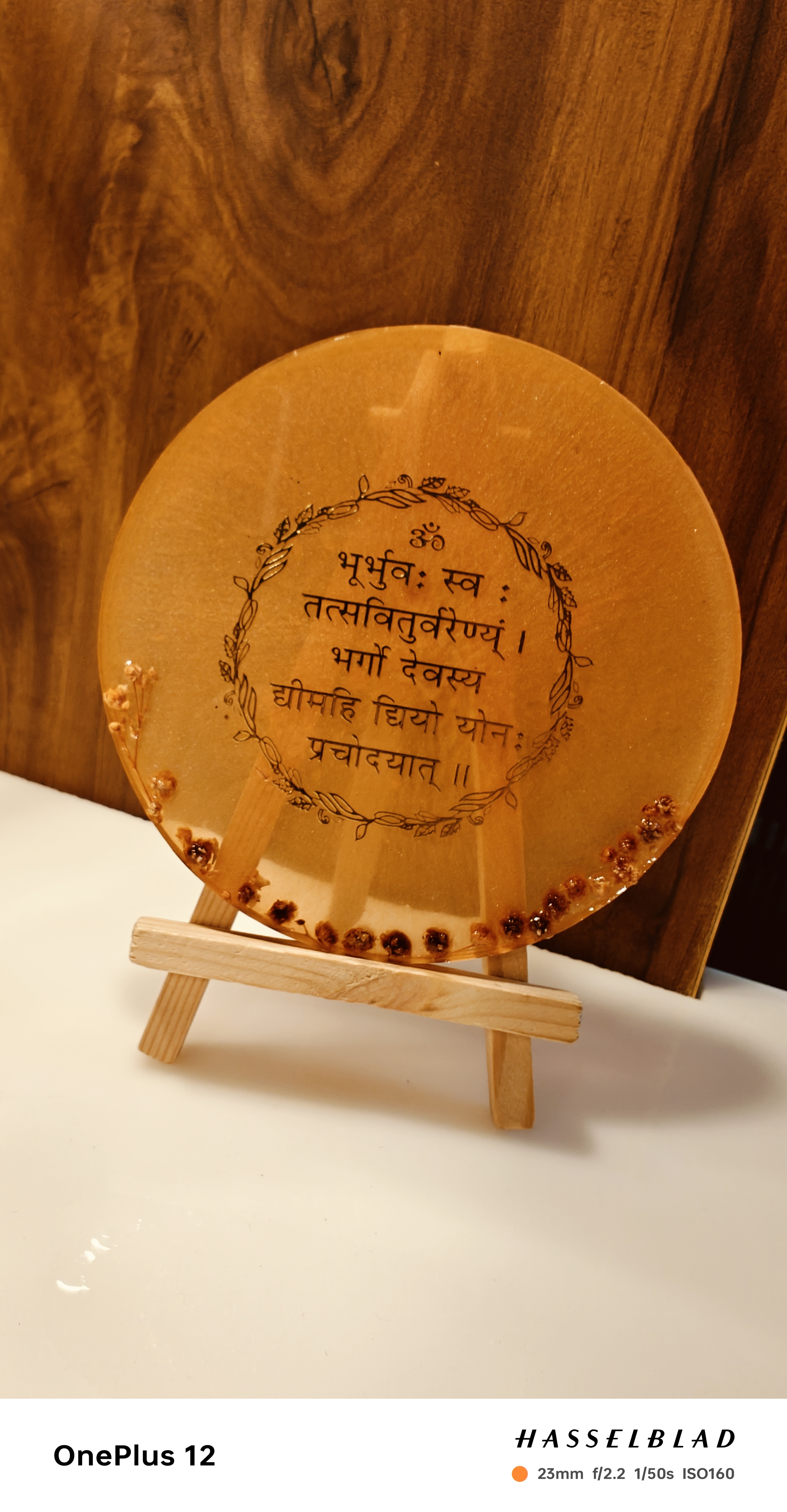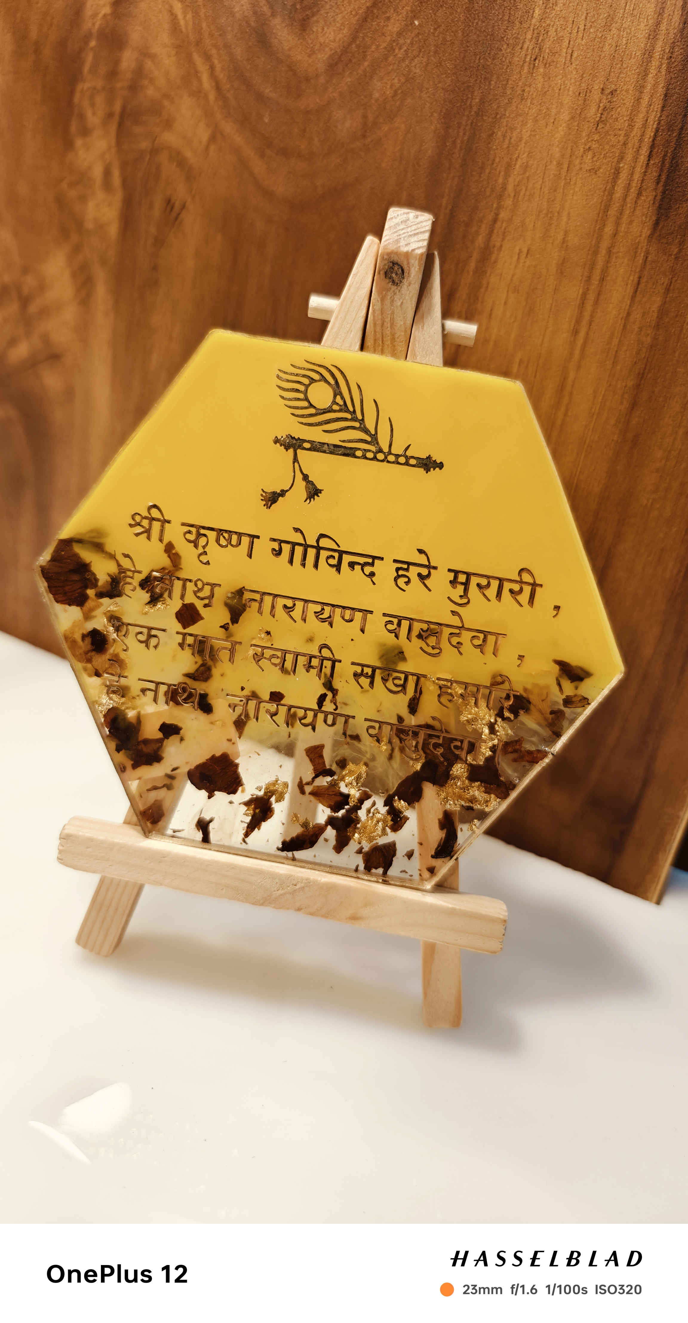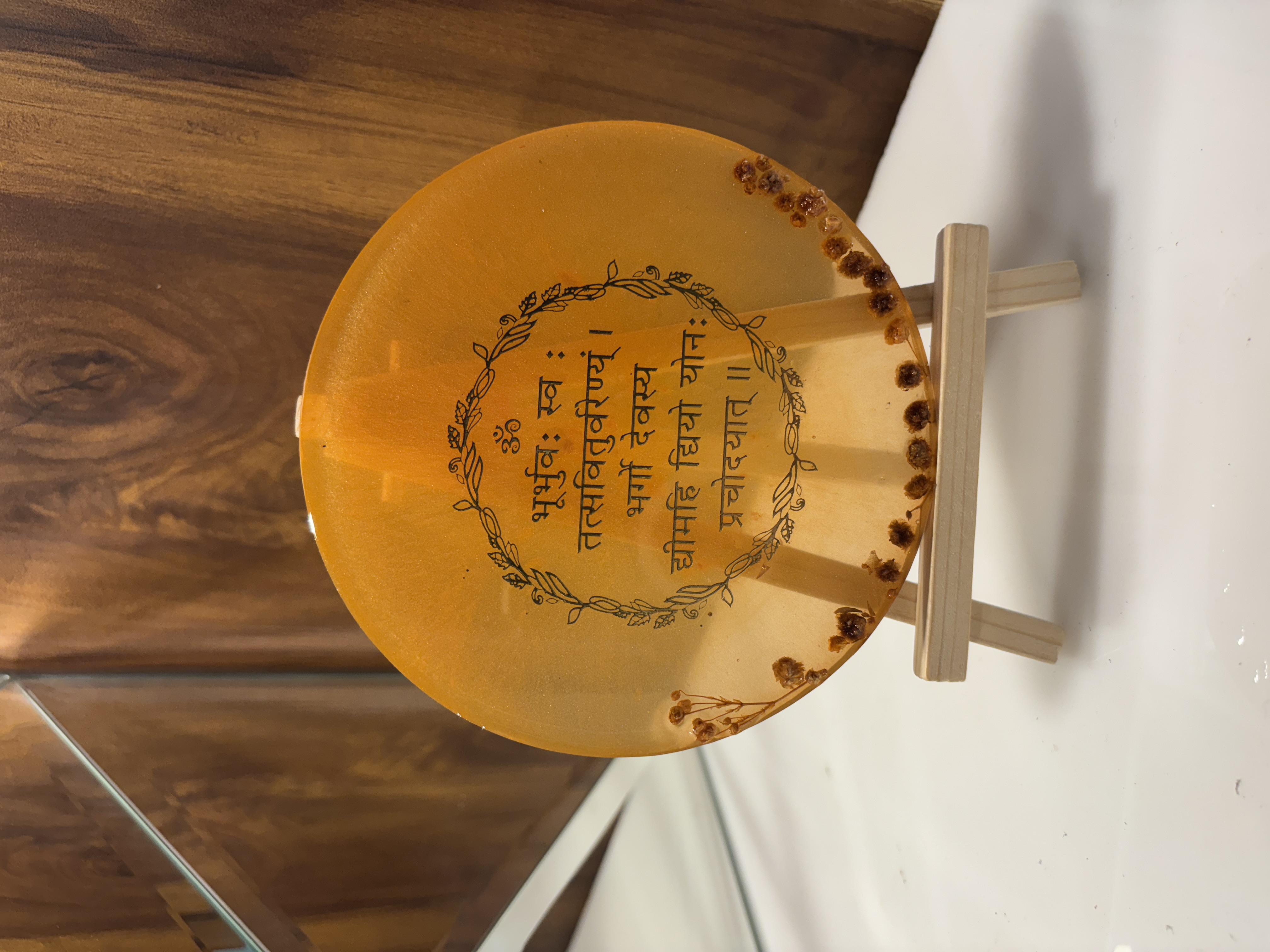 Sacred mantras and shlokas, beautifully preserved in resin.